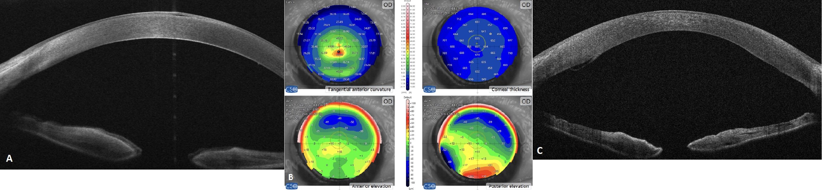 Fuchs' Endothelial Corneal Dystrophy (FECD) is a prevalent age-related eye disease affecting over 4.5% of individuals aged 50 and above. This condition is characterized by the progressive loss of corneal endothelial cells, leading to corneal oedema (swelling, Figure 1), pain, and vision impairment. Currently, the only definitive treatment available is corneal transplantation surgery. Anterior segment Optical Coherence Tomography (AS-OCT) is an advanced specialized imaging modality that provides high-resolution cross-sectional scans of the cornea, offering an unprecedented opportunity to detect early clinical signs of FECD and subtle post-transplant complications.